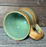 Wheel thrown stoneware coffee mug. Approximately 12-13oz and 4” tall. Dishwasher and microwave safe