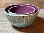 Set of two small nesting bowls. 6.25” wide x 3.25” tall & 4.75” wide by 2.75” tall. Dishwasher and microwave safe.