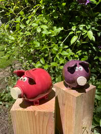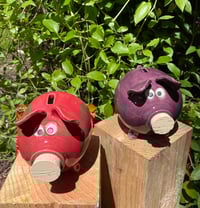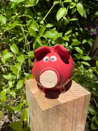 Wheel thrown then trimmed and adorned with facial features and a cute little corkscrew tail. These little guys are sure to add some cheer to your savings plans. Cork nose in case you need to make a withdrawal.