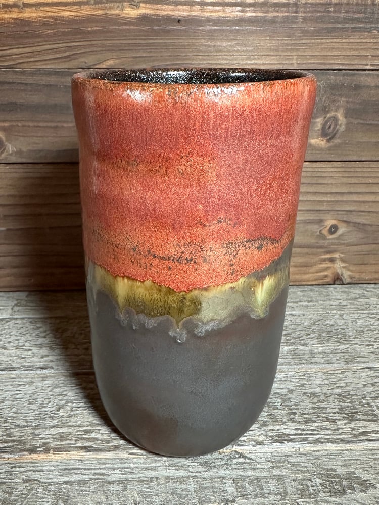 Travel mug with BPA free silicone lid and sleeve. Approximately 5.25” tall to rim, 6” with lid. Holds about 14oz. Sleeve included to help when using with hot liquids- stoneware by its nature is going to get hot/warm with hot drinks. And yes- the inside is sparkly!